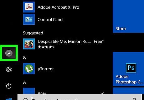 Click your user profile icon. It's on the left side of start, towards the bottom above the File Explorer Windows Start Explorer icon.