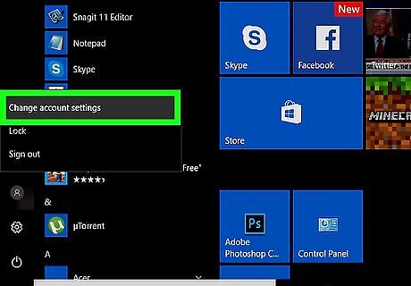 Choose Change account settings from the dropdown that appears. It's located at the top of the dropdown. You can also go to "Settings > Accounts > Your info".