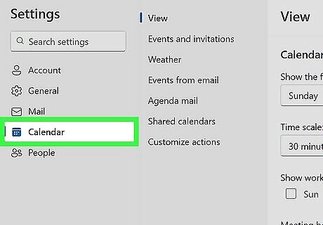 Select Calendar. Click Calendar in the Settings/Options menu to open your Calendar settings.
