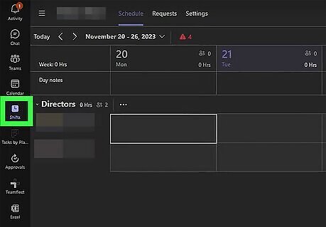 Click Shifts in the left-hand menu bar. If you use Teams with an organizational (school or work) account, you should have access to the Shifts app. It’s located in the left menu bar in Teams for desktop or the web. If you don’t see it, click See more apps •••. What you’re able to do with Shifts depends on your role in the team. If you’re a team owner, you can schedule shifts for your team members. If you’re a team member, you can view, swap, or request shifts, but you can’t create or edit them. The instructions below are primarily for team managers assigning shifts to their team members.
