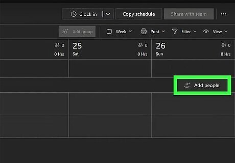 Create schedule groups. You can create groups based on the roles of the team members in each group. For example, in a retail setting, you might create separate groups for cashiers, sales associates, and managers. To create a group, click Add group, then select More options ••• > Rename group. Give your group a name that reflects its role, then click Save. Select Add people to add members to the group.
