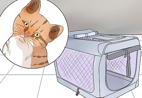 Get an appropriate kennel. By USDA regulations, your cat needs to have enough room in its kennel when traveling. It should be able to stand up, turn around, and lay down fully. In other words, it should be half a foot longer and half a foot taller than your pet. When you call or go online for an estimate, use these estimates to choose a kennel size for your cat. In some cases, you will need to provide your own crate. In other cases, the company will provide a kennel for the pet. Check with your company to see what it does.