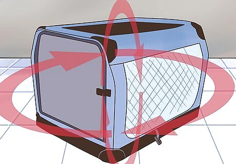 Find a good kennel. Airlines also have certain requirements for the kennel. For the most part, the transport kennel usually must be rigid, escape-proof, and meet other requirements, such as ventilation on at least 3 sides for domestic flights. However, each airline may have specific requirements. For instance, on American Airlines, the kennel can't be bigger than 36 inches (91.4 cm) long, 26 inches wide, and 28 inches high. Nonetheless, your pet should be able to sit up, turn around, and lay down. You may also need to provide water and food dish that is securely attached to the inside of the kennel yet can be reached from the outside. Most also require you to provide bedding that can absorb any bathroom mistakes your cat does in the kennel. For instance, towels and shredded newspapers are suggested options.