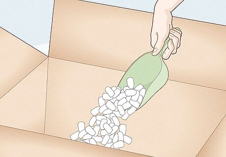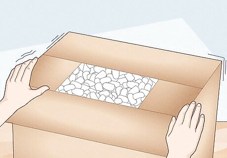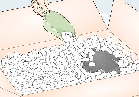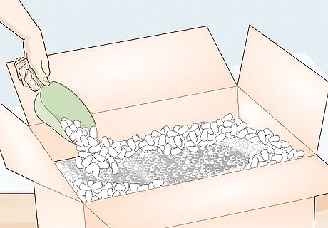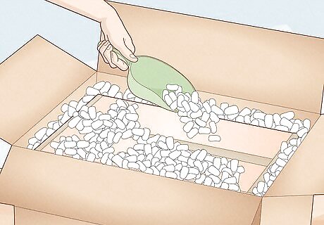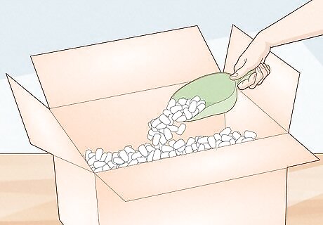 Fill a large cardboard shipping box halfway with packing peanuts.
