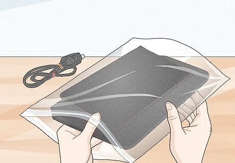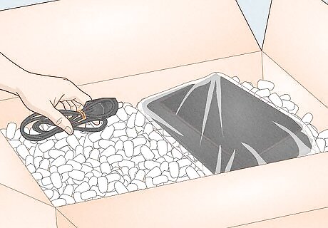 Place small components of the device into their own plastic bags and label them. For cords, bundle them and use twist ties to keep them together. Unbundled cords can take up a lot of space.