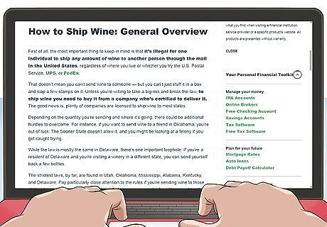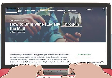 Confirm that they can ship wine to where you or your recipient lives. Browse the site’s FAQ section or check under “rules and restrictions” at the bottom of the webpage. Verify that the retailer can ship wine to you or your recipient’s state or country. If they cannot, then you will need to choose a different online retailer. If the site does not list where it can ship wine to, find the site's contact information. Either call or email the site to find out more information.