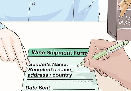 Make the arrangements to have the wine shipped. Once you have found a winery that can send wine to where you need it to go, purchase a select amount of wine. Give the winery the sending address and have the wine shipped as soon as possible. Since only persons 21 years of age or older can sign for a wine shipment, you may want to request a hold for pickup service. If you want to send the wine as a gift, ask the winery if they can gift-wrap the package.