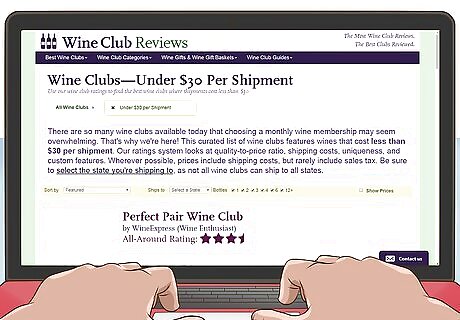 Find a wine club. If you are a wine enthusiast, then your best option may be to join a wine club. Join a club based on a type of wine, a region, or your budget. Whatever club you choose, make sure it fits your tastes and style. A one-bottle membership typically costs $60 to $90 every three months, while a two-bottle membership typically costs $100 to $150 every three months. Prices can vary depending on your membership level. Check out reviews of wine clubs to determine which clubs meet your tastes, needs, and budget.