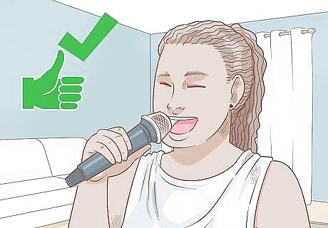 Practice basic singing techniques. Untrained singers often breathe from too high in their chest, compress their throat as they sing, and adopt poor posture that affects their voice. Whenever you sing, stand up straight, place your feet shoulder-width apart, and roll your shoulders back. Breathe deeply from your diaphragm, low in your chest.
