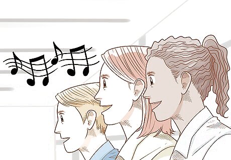 Join a local choir to gain group singing experience. Joining a good choir will rapidly improve your voice, pitching, ear, and sight-singing. In addition, it builds the maturity and professionalism needed to sing as part of a group. Ask your local community center or go online to find choir opportunities near you. Joining your church or school choir is a great place to start. When you're in an a cappella group, you need to know when to blend your voice to mesh well with the other singers, as well as when you can make your voice unique to stand out. Pay attention to your volume when singing in a choir to make sure you're not singing too loudly or too softly.