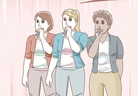 Sharpen your harmonizing skills. You'll likely need to harmonize with others while singing a cappella, and it's also a useful skill to know even if you're singing on your own. Practice harmonizing by singing with others, such as in an a capella group or choir. Record yourself while you practice harmonizing so that you can play your voice back to see if it goes well with the original sound. Try humming the harmony section of a song while someone else sings the melody.