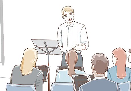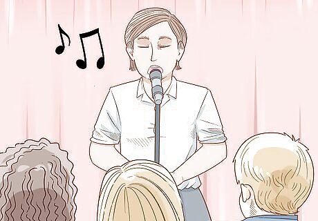 Audition to be in an a cappella group. Look to see if your school or local community center has an a cappella group that you could try to join. You can also go online to find a cappella groups near you. Practice your song a lot beforehand so that you feel well-prepared when you go to audition, and show that you're confident and unique when performing. If you find an opportunity to audition, ask the a cappella group if there's anything specific you need to bring or sing for them. Smile, stand up straight, look the group members in the eye, and tell them clearly your name, what you'll sing, and who the song is by.