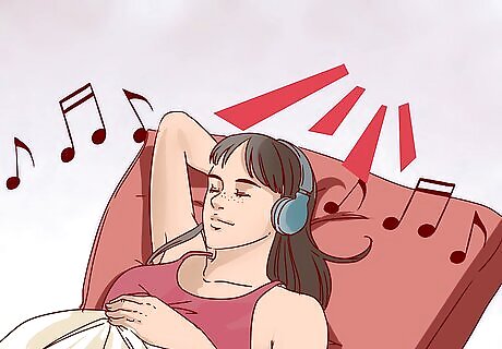 Drown out the sound. While you can probably sleep through low levels of sound, loud sounds like yelling can keep you awake. The best way to minimize the impact of loud sounds on your sleep is to drown out the sound. Ideally you’d use a sound machine, such as the kind that plays white noise or ocean waves. If you don’t have a sound machine, though, play soothing music at a low volume, which should help you sleep. Whatever noise you use to drown out the sound of your parents arguing, make sure that the volume isn’t too loud. Classical music at a low volume is excellent to play when you’re trying to sleep. If you have to use it, a television can help drown out noise. Bear in mind that a television may actually keep you awake, though. As a last resort, if you choose to cover your ears with a pillow, make sure that you don’t obstruct your airway at all.