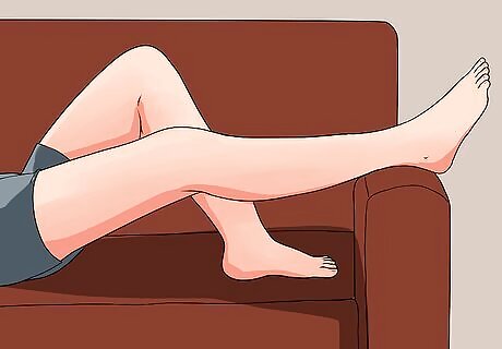 Elevate your feet often. If you have to stand a great deal, take frequent breaks to take the weight off your feet. Whenever you can, elevate your feet at a 45 degree angle to your body, and relax for 10 to 15 minutes. Elevating your feet will move blood away from the feet and help reduce swelling. Take off your shoes and socks before elevating your feet. It always feels good, especially if your feet get sore a lot.