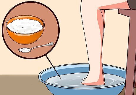 Soak in an Epsom salt foot bath. Epsom salt can help soothe your feet, giving you instant relief from foot pain. Combining heat and Epsom salts, which is primarily magnesium, works well to relax the feet and ease pain. Put two to three tablespoons of Epsom salt in a tub of warm water. Soak your feet in the tub for 10 to 15 minutes. The salt can make your feet dry, so apply some moisturizer after soaking them.