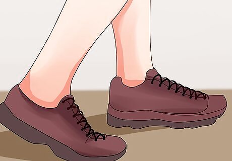 Wear the right shoes for the activity you are doing. Wear the right shoes for the activity. Wearing the wrong type of shoes can cause a long list of problems, including knee tendinitis, chronic foot pain, heel spurs, and stress fractures. Choosing the right shoes is especially important when it comes to fitness footwear. Different sports and exercises have unique repetitive movements that require special support and cushioning. You wouldn't play basketball in a pair of heels. Likewise, don't rely on that old pair of sneakers if you're going climbing or hiking. Spend the extra money on buying shoes that are specific for the activity you're doing. The investment could save you and your feet a lot of pain.