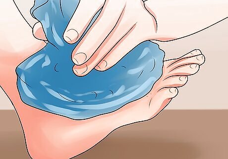 Try a hot and cold soak. Hot-and cold-water therapy can be effective in treating foot pain. The hot treatment will promote blood flow, while the cold treatment will reduce inflammation. Fill one bucket with cold water and another with bearably hot water. Sit in a comfortable chair, dip your feet in the hot water for three minutes and then do the same with cold water for at least 10 seconds or up to a minute. Repeat the whole process two or three times and end with cold foot bath. Another option is to apply a heat pad and an ice pack alternately for 10 minutes to reduce pain.