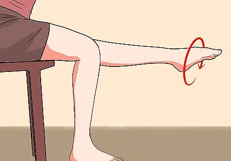Practice the circle and stretch exercise. Sit in a chair with one foot raised in front of you, and make four or five small circles in the air in both directions with your foot. Next, point your toes as much as you can; then stretch them up towards you. Repeat six times with each foot.