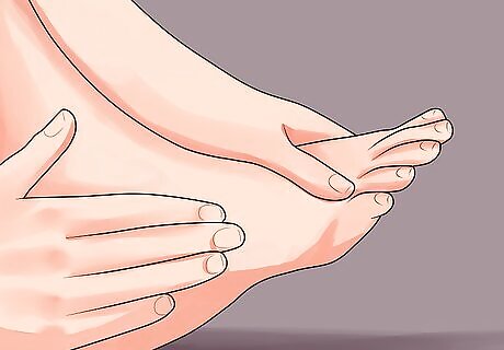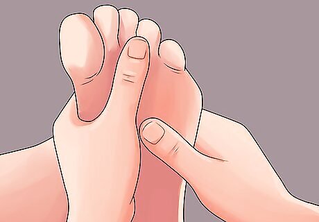 Apply gentle pressure to your feet with your thumbs. Using your thumbs, apply gentle pressure to your foot in slow, circular motions, from the toes to the heel.