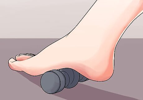 Try the golf-ball roll. Sit down with your shoes off, place one foot on top of a golf ball, and roll (don't stand) on the ball using only the weight of the foot; repeat with the other foot.