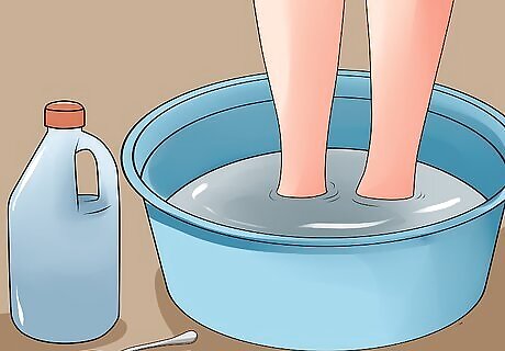 Try a vinegar soak. Vinegar is used in various treatments and can help with foot pain due to sprains or strains as it reduces inflammation. Fill a tub with hot water, then add two tablespoons of vinegar. Soak your feet in the tub for about 20 minutes.