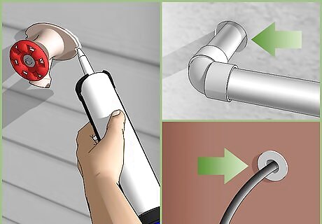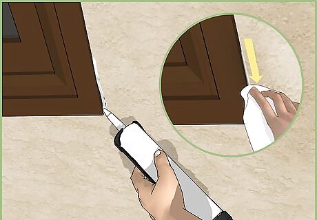 Use caulk to fill in all the cracks around your windows. Be sure to use a good caulking gun, one that has a back-off trigger which will stop the flow of caulk when you press it; otherwise, you will end up with too much caulk and you'll end up with a mess. Smooth the bead of caulk you apply with a damp rag so that it is even and you can see if you've missed any cracks.
