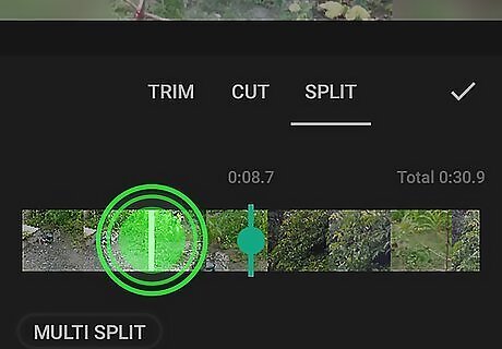 Move the line in the timeline to where you want to split the video. You can drag and drop your finger on the screen to move the line through the timeline. You can tap Multi Split if you want to split the video into more than two clips.