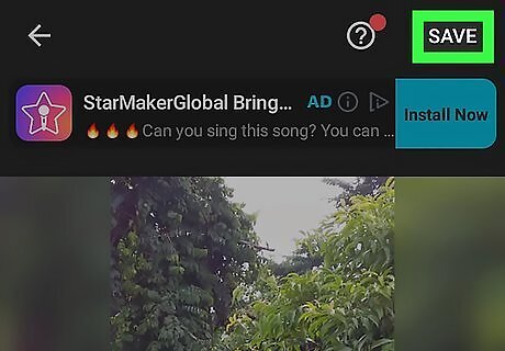 Tap Save. You'll see that saving this split version will destroy the original video. Tap Save again to continue. You'll then be prompted to select the video quality and be directed through a few ads as your clips save. You can find your edited clips in your Gallery.