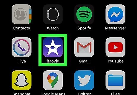 Open iMovie. This app icon looks like a white star with a video camera on a purple background. You can find this app on one of your Home screens.