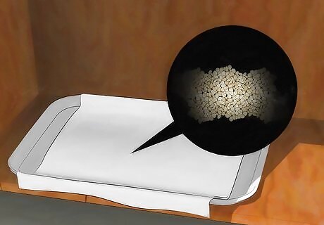Move the quinoa back to the plate or tray. Put the tray of quinoa back into a dark room to continue the sprouting process. Place the cloth back over the quinoa for protection. The quinoa should eventually sprout into a plate full of spiral-shaped roots that are at least one-quarter inch in length. Let the quinoa sprouts dry out for up to 12 hours, since excess moisture damages the quinoa crop.