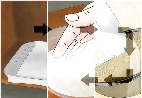 Use a fine mesh strainer to gather your quinoa. Quinoa is small, so you need to make sure you don’t lose any grains. After rinsing the saponin from the quinoa, use a fine-mesh strainer to collect the rinsed quinoa while draining the water into the sink. Transfer the quinoa to a seed sprouter or into a second bowl.