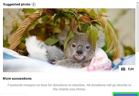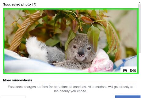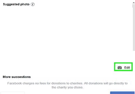 Click the camera icon to upload your own image. You can use the default image or upload your own. You want to use a high-resolution image that helps tell your story for the fundraiser. You can add more images to your fundraiser later, but this will be the cover photo. Most nonprofits have a default cover photo for your fundraiser.