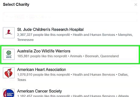 Click a nonprofit you'd like to raise money for. A window will pop-up for more details.