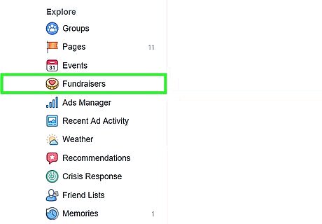 Click Fundraisers. You'll see this in the lower part of the menu on the left side of the page, under "Explore."