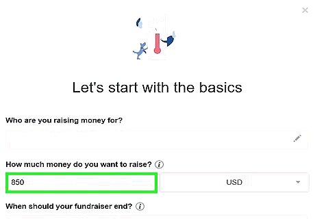 Type your fundraiser goal. You don't have to reach the goal to receive your funds, but this number motivates others to donate. For example, if you need to fundraise $200, but reached $150, you can withdraw that $150 without reaching $200. Make sure to change the currency of your goal if the default currency isn't correct.