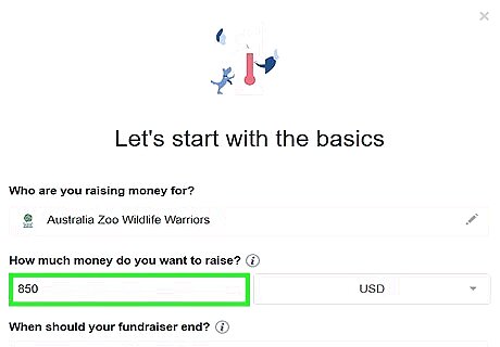 Enter your fundraiser goal. You don't have to get to the goal to receive the money. For example, if you set the goal to $200, but raise $75, your nonprofit will still get the $75. Make sure to change the currency of your goal if the default currency isn't correct.