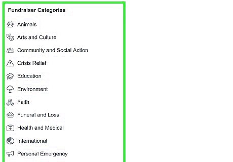 Click a category. You can choose to raise money for "Medical," "Personal Emergency," "Family," "Pets/Animals," "Faith," or "Other." People can find your fundraiser by searching categories.