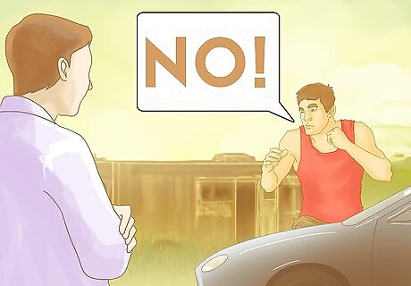 Refuse to leave. If the title owner shows up and asks you to leave, you should refuse. Remember that you have to possess the land continuously, so leaving because the owner tells you to could be proof that you aren’t possessing the land. However, you need to leave if the police arrest you. Resisting arrest is a crime. Instead, leave peacefully and contact a lawyer.