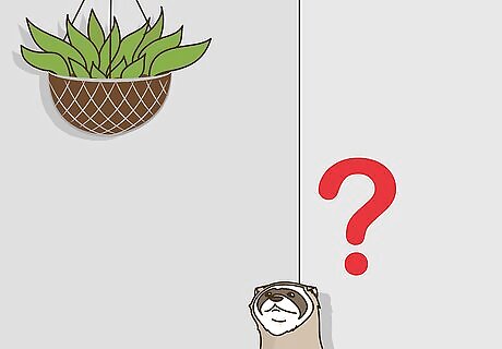 Hang up your houseplants. One way to keep ferrets out of your plants is to simply hang them from the ceiling or doorway. Though ferrets are mischievous, they won't be able to get to the houseplant to dig at it. Make sure you don't hang it close to anything a ferret can climb up.
