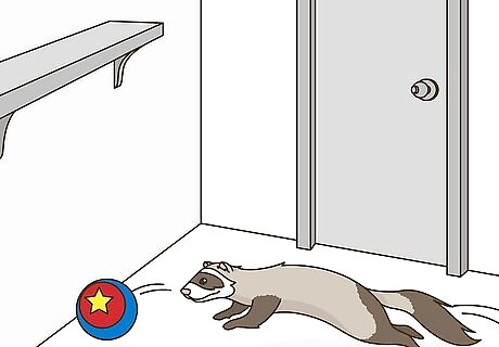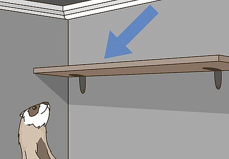 Place them on a high shelf. Another option is to just place them on a shelf that the ferrets can't reach. Keep in mind, though, that ferrets do like to climb, so try to make it a shelf that's not easily accessible by climbing. A mounted wall shelf is best, as your ferret may be able to climb up a bookcase.