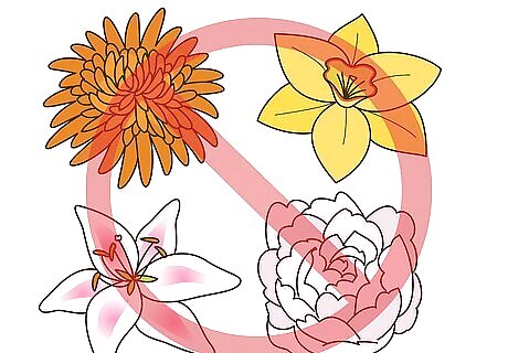 Skip toxic houseplants. Some plants are toxic to ferrets. If they chew on them, they can get ill or even die. Houseplants toxic to ferrets include poinsettias, aloe vera, milkweed, morning glory, carnations, yew, rhododendrons, tomato plants, baby's breath, chrysanthemums, and daffodils. If you have these plants in your home, keep them in a separate room or take them outside. Also, check flower arrangements for toxic plants, as many flowers can be detrimental to a ferret's health. You can throw out the arrangement or place it far out of reach of your ferret. Keep in mind, though, that falling leaves and flowers can be eaten by your ferret. Talk with your family and friends, as well, so they don't give you these plants or bring them in your house.