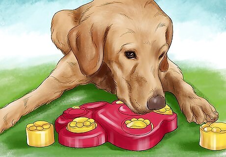 Try giving the dog more interactive toys so it’s not bored at home. Sometimes dogs bark because they’re bored. Leaving the dog with more interactive toys when you’re not available to play with it can help prevent it from barking out of boredom. Puzzle toys, a KONG with treats inside, and stuffed squeaker toys are all good interactive toys for a dog. The dog will spend time chewing or playing with the toy to get the treat out.