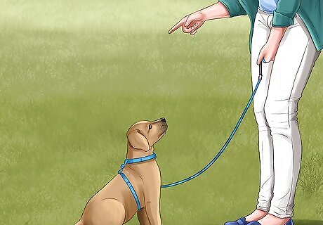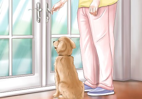 Stay silent and avoid yelling at the dog. Telling the dog to be quiet or yelling at it won’t make it stop barking. The dog might even think you’re barking back, which will make it bark more. If you feel yourself getting frustrated by the dog’s barking, try leaving the room and going somewhere else so you don’t end up yelling at the dog.