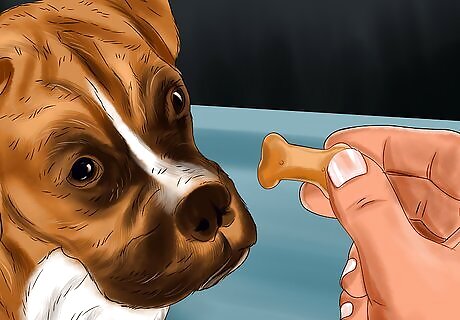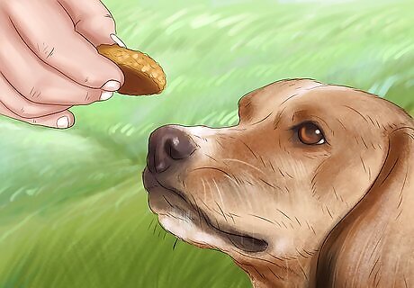 Reward the dog immediately when it stops barking. Once the dog is finished barking, stop ignoring it. Praise it and give it a treat so it learns to associate not barking with getting love and attention. If the dog starts barking again, ignore it until it stops. Over time, the dog will learn that barking won’t get it what it wants from you.