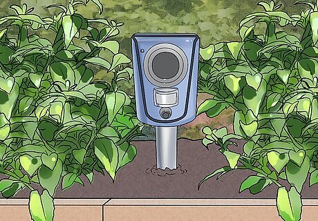 Set up a motion-detecting sound deterrent to scare cats off. Motion-detecting sound deterrent devices make a loud hissing sound when a cat comes near. Cats dislike this sound and will usually take off running when they trigger the device. Position the device right next to your flower bed so that it will go off as soon as the cat approaches. You can purchase these devices at hardware and garden supply stores. Tip: You can also find motion-activated statues that make noise, such as a frog statue that croaks. This type of device may also scare off the cat if you place it near your flower beds.