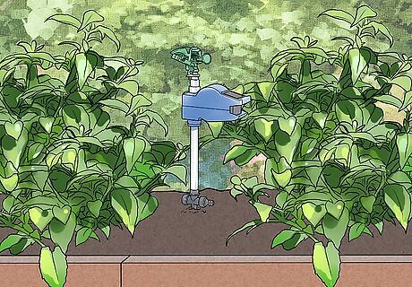 Install a motion-activated sprinkler to spray cats that come by. Position the sprinkler near the flower beds that the cats like to dig in. When the cat visits, it will be surprised with a quick blast of water. The water may not even hit the cat, but the surprise of water shooting out at random will scare it. The cat may try to invade the flower beds again later on, but it should learn to stay away after setting off the sprinkler a few times. Check hardware and garden supply stores for a motion-activated sprinkler.