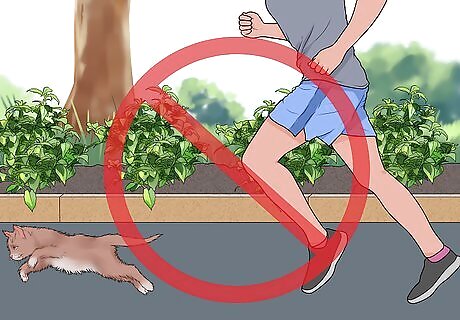 Avoid chasing cats out of your garden yourself. While it might seem like the sight of a human running after the cat would make it think twice about coming around, the cat may actually see this as a game or challenge and be more likely to visit again. The cat will be much more frightened of unknown threats than of a human. If you spot the cat in your garden or yard, don’t let it see you! Spray it with a garden hose or water pistol from a window or behind a bush. The cat will be more frightened if it does not know where the water is coming from. You could also try hissing from a window if the flower beds are close to your house. Just make sure the cat does not see you!