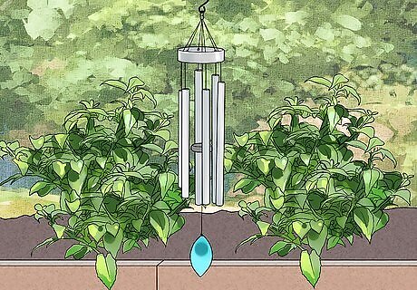 Put up wind chimes for constant ambient noise. You can also try hanging wind chimes near your flower beds. The tinkling sounds may bother any invading cats and make them think twice about sticking around. Position the chimes as close to the flower beds as you can. For example, hang chimes from your front porch if the flower beds are on the front side of your house, or hang the chimes near a back window if they are behind your house.
