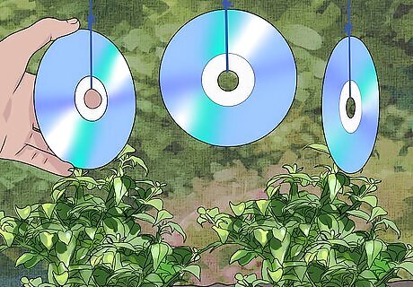 Hang CDs or water bottles to deter the cats with light. Random light patterns and strange objects may also spook cats. String up a few CDS or empty water bottles and hang them from a nearby bush or tree branch. The reflections and movements of the objects might scare away any cats that come by. Placing a few CDs back side up on the ground around the flower bed might also help to scare away invading cats.