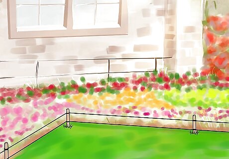 Place taut string around flower beds to create an obstacle for cats. Hammer a stake at each corner of the bed. Wrap the string around 1 of the stakes, then pull it taut and wrap it around the next stake at the same level. Keep going until you have surrounded the flower bed with string. Cats dislike the feeling is going over or under a piece of taut string, so this might be enough to keep them out.
